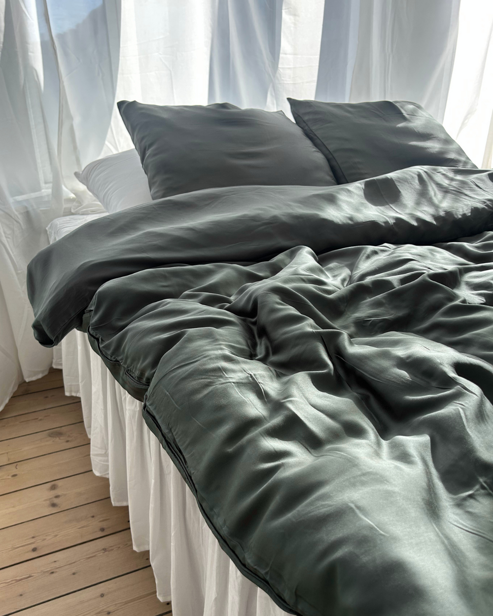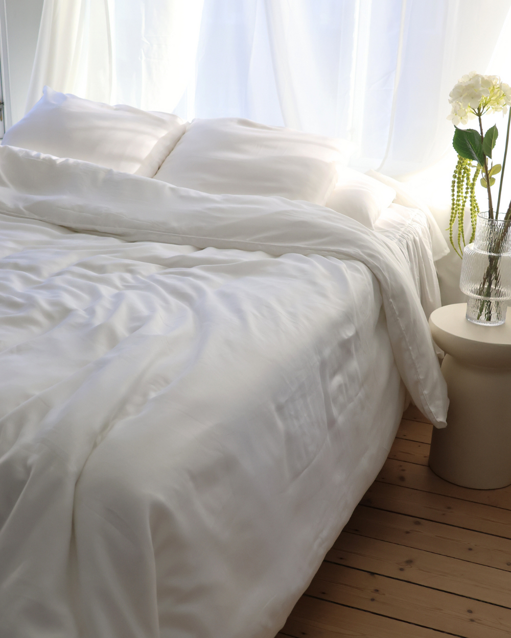 Bambussengetøj er hurtigt blevet det foretrukne valg for mange danskere, og det er ikke uden grund. Vi sover i gennemsnit en tredjedel af vores liv, og derfor er det vigtigt at stille krav til sin søvn. 100% bambusviskose (Lyocell) tilbyder en lang række fordele, der gør det til en god investering. Kombinationen af blødhed pg de temperaturregulerende egenskaber gør bambusmaterialet ideelt til sengetøj. Med over 49% af danskerne, der lider af søvnproblemer, herunder nattesved, kan sengetøj i bambus bidrage til en bedre søvnoplevelse og bidrage til at afhjælpe disse problemer. En god nats søvn er fundamental for en god dag og afgørende for både fysisk og mental sundhed, og her kan bambus spille en vigtig rolle i at sikre, at man vågner op frisk og veludhvilet. Ud fra mange tilbagemeldinger og egne indtryk vil vi beskrive oplevelsen således: Når man kryber ned i sengen og svøber sengetøjet omkring kroppen, vil sengetøjet virke lidt tungere end mange andre materialer og køligt (ligesom silke af høj kvalitet). Herefter vil det hurtigt tilpasse sig kroppens temperatur, da det er et åndbart materiale. Da sengetøjet er lidt tungere end det, de fleste er vant til, vil det også føles mere beroligende for kroppen. Selvom sengetøjet i sig selv har mange gode egenskaber, har dynen naturligvis også stor indflydelse på den temperaturregulerende effekt. Ligeledes har temperaturen i soveværelset og valget af seng/madras også indflydelse på helheden af din søvn.